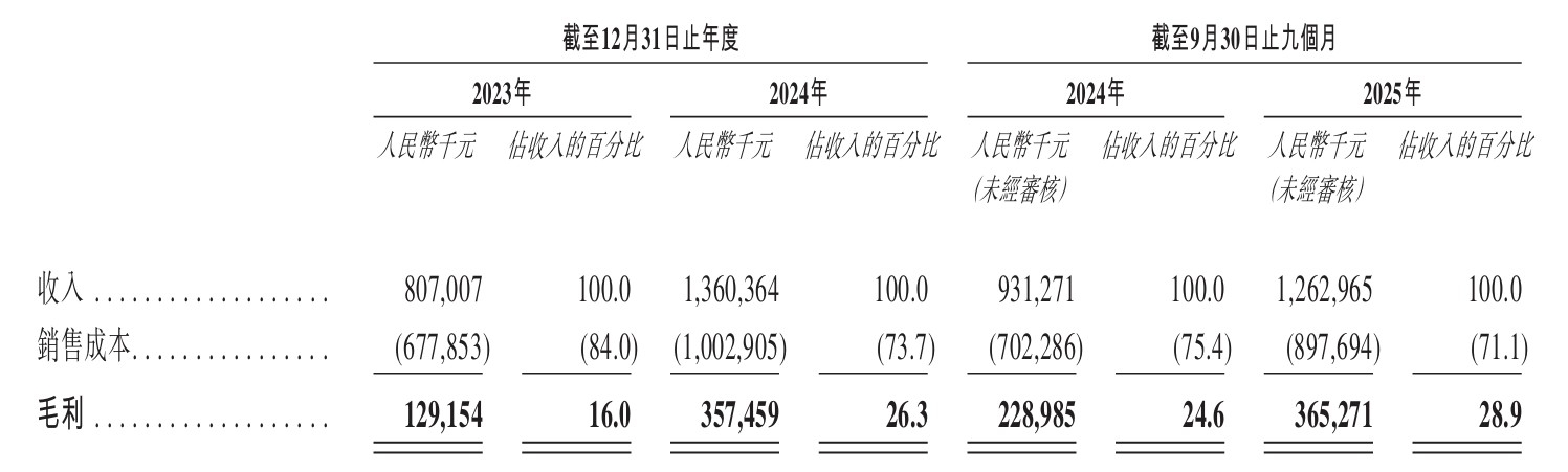 财务数据露出,海柔立异收入增长势头强盛,2023年、2024年至2025年前9个月,海柔立异的营收区分达到8.07亿元、13.6亿元、12.63亿元。公司毛利率从2023年的16.0%跃升至2025年前三季度的28.9%,主要归功于大陆除外市集的名目范围更大、做事附加值更高、订价条目更优。