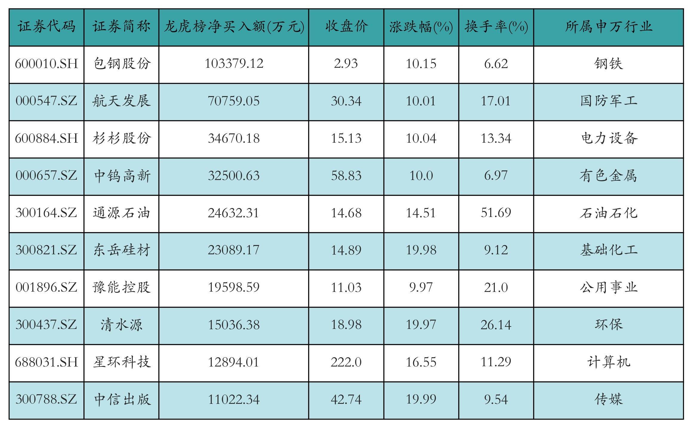 四、龙虎榜情况